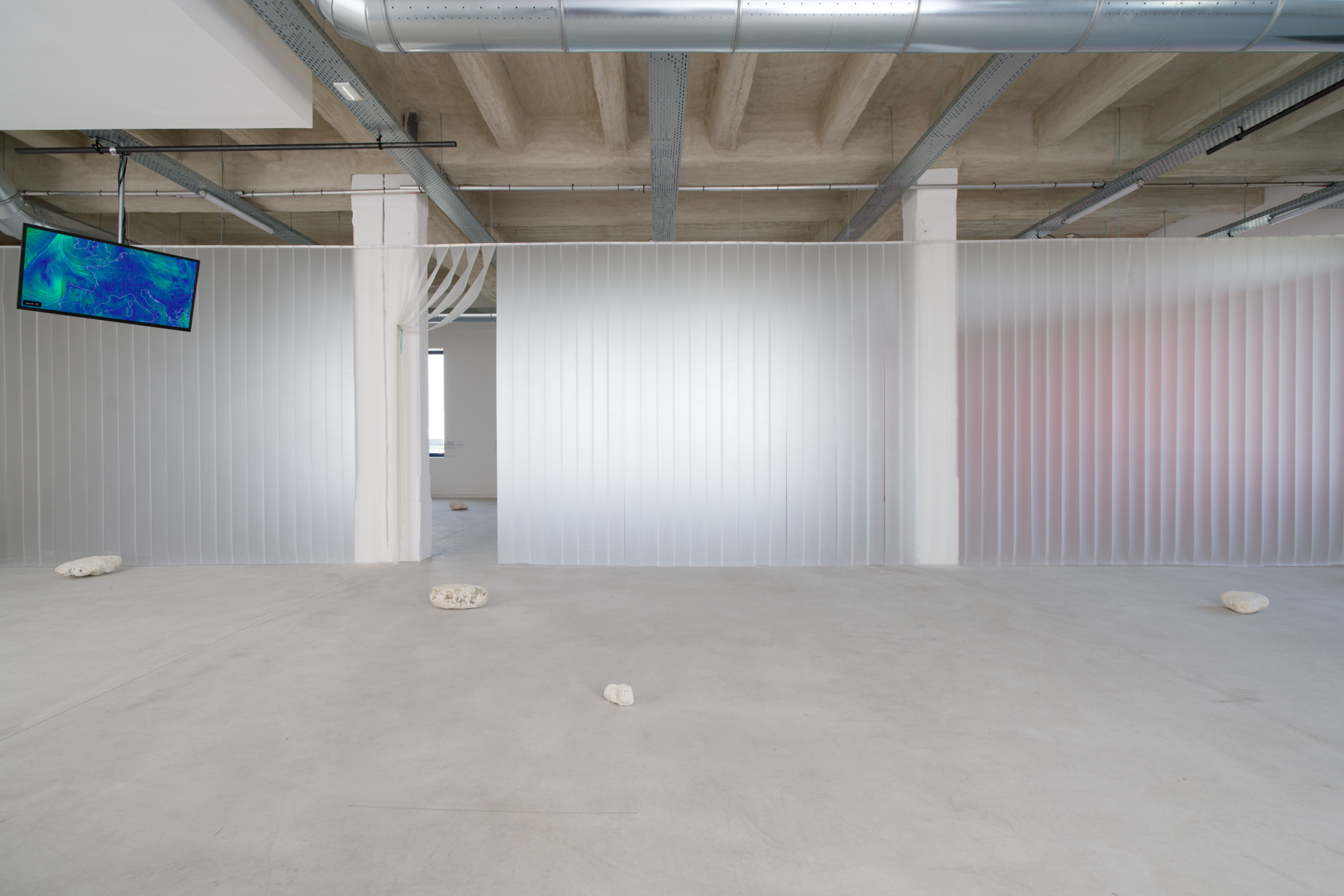 By channeling the energetic forces of the exhibition site, the installation forms a fluid, responsive environment that evolves through the seasons. Dispersed and reproducible objects generate microclimates, inviting reflection on the ecology of a place and the conditions that shape our experience of comfort.